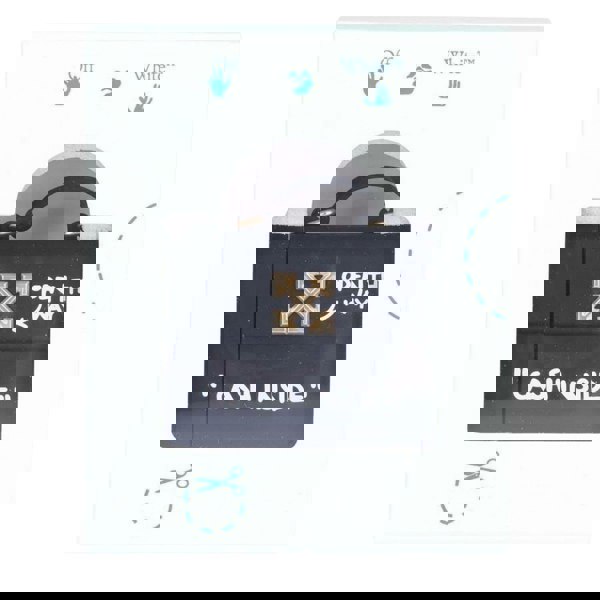 Finished in off white with black, gold and white detailing, the case features a logo and text print for a bold, graphic look. A fold-over design helps keep the case securely closed, making it a practical choice for carrying in a bag or pocket.