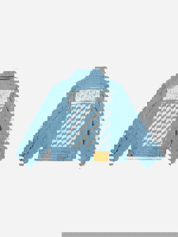 Introducing the luxurious Off-White Kids Diag Sketch Denim Jacket in Blue, a true masterpiece for the discerning young wardrobe in SS2026. Expertly tailored by Off-White for both boys and girls, this jacket embodies high fashion with a playful edge.