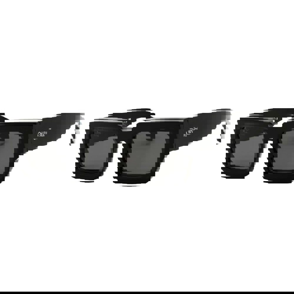 Elevate your style with the Off-White Lecce Black Thick Framed Sunglasses, designed to make a bold statement. Featuring a sleek black frame paired with dark grey lenses, these sunglasses offer 100% plastic construction for both lightweight comfort and durability. The precise dimensions—50mm lens width, 24mm bridge, and 145mm temple length—ensure a comfortable fit for all-day wear. Perfect for shielding your eyes while adding an edgy, contemporary flair to any outfit, these sunglasses blend modern aesthetics with practical protection effortlessly. Make them your go-to accessory for both sunny days and fashion-forward looks.