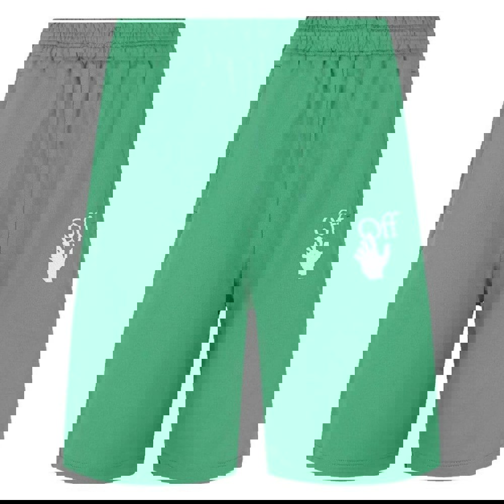 These Off-White sweat shorts come in green with a printed design and a loose fit. The fabric blend combines polyamide, cotton and elastic, with an elasticated waistline for a flexible feel. Finished with practical pocketing, they include two side pockets and welted detailing for a clean, structured look.