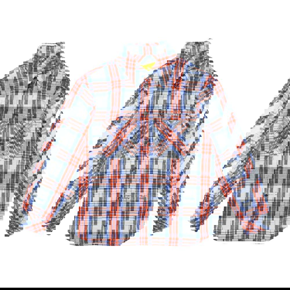 This kids’ flannel shirt comes in a multicoloured finish with an all-over checkered print and diagonal stripe detail. An embroidered logo adds a branded touch, while the long-sleeved cut is finished with double-button cuffs. A turn-down collar and button-down fastening keep the look classic and structured.