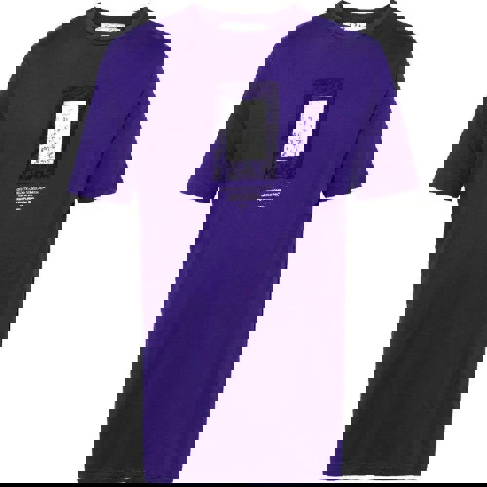 This short-sleeved T-shirt is made from 100% cotton and comes in purple. It has a crew neck and a logo and mirror design for a distinctive finish. A straightforward option for everyday wear, it works well on its own or layered under casual outerwear.