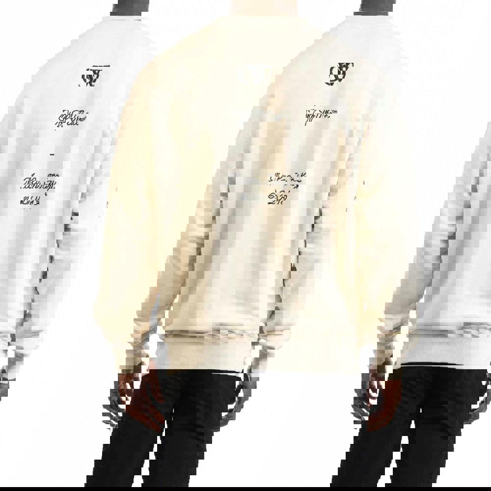 This men’s crew neck sweatshirt from Off-White comes in light beige and is made from 100% cotton in a midweight, non-stretch fabric. It has a relaxed fit with a drop shoulder shape and long sleeves, finished with ribbed cuffs for a clean outline.