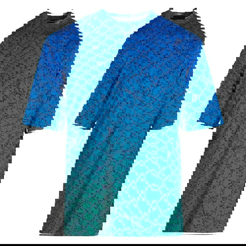 This unisex adult sports T-shirt comes in peacock blue with an all-over print and repeat logo design. A crew neckline and short sleeves keep the silhouette clean and simple, making it an easy option for everyday wear.