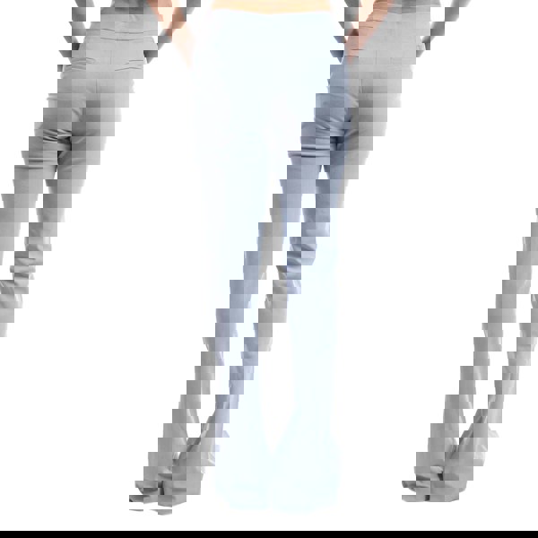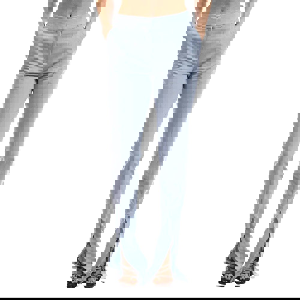 The leg is cut with a flared shape and finished with a front slit. Seam detailing adds definition, while two side pockets provide practical storage.