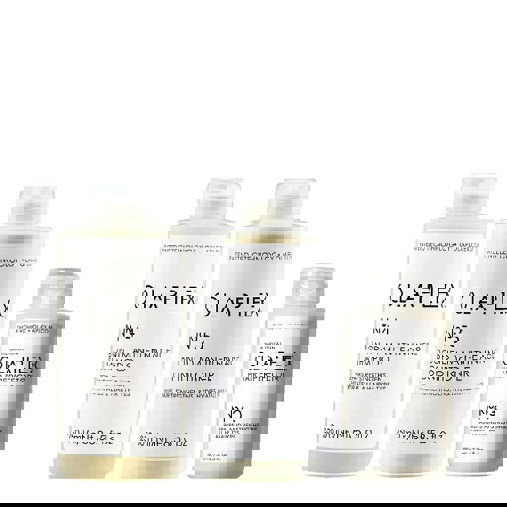 Olaplex brings together three core bond-maintenance essentials in this repair and maintenance trio, combining Olaplex No. 4 Bond Maintenance Shampoo, Olaplex No. 5 Bond Maintenance Conditioner and Olaplex No. 3 Hair Perfector. Created to cleanse, hydrate and rebuild the look and feel of damaged hair, it suits all hair types, with a focus on strands weakened by heat styling, colouring or chemical treatments.