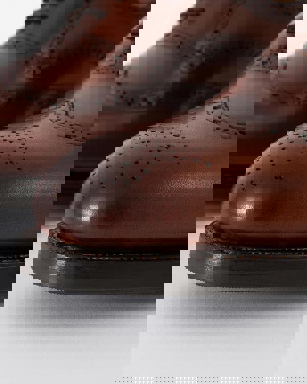 Oliver Sweeney’s Hunstanton Oxford shoes bring a refined wingtip brogue profile to a Goodyear welted build. Crafted in cognac calf leather with a hand-antiqued finish, the upper shows tonal variation across the brogued seams, toe and heel for added depth of colour.