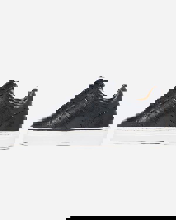 The Kendal cupsole trainer is made from navy milled leather – a tumbled, grainy textured leather with a soft feel. The upper pattern has clean lines with neatly folded seams and side panels and a cushioned collar. ¾ calf leather lining and full leather insock. Made in the traditional way the upper is cemented to a lightweight white rubber cupsole and secured with a side stitch.