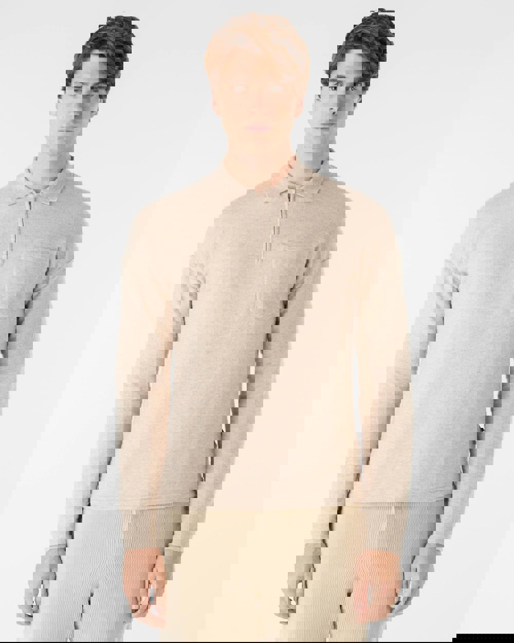 The Killala quarter zip jumper has a relatively fine 12 gauge jersey knit with tubular seams at the base, around the silver zip and on the breast pocket. With a Milano stitch for the collar; a double knit with great stability, and a flexible rib stitch at the cuffs.