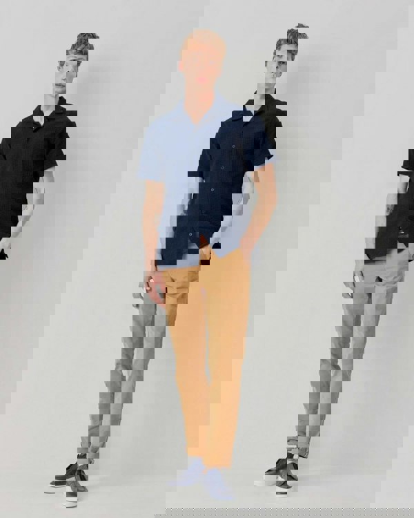 Oliver Sweeney Ravenshead Mens Cotton Seersucker Short Sleeved Shirt in Midnight Stripe