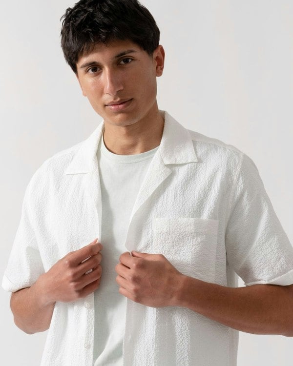 Oliver Sweeney Ravenshead Mens Cotton Seersucker Short Sleeved Shirt in White