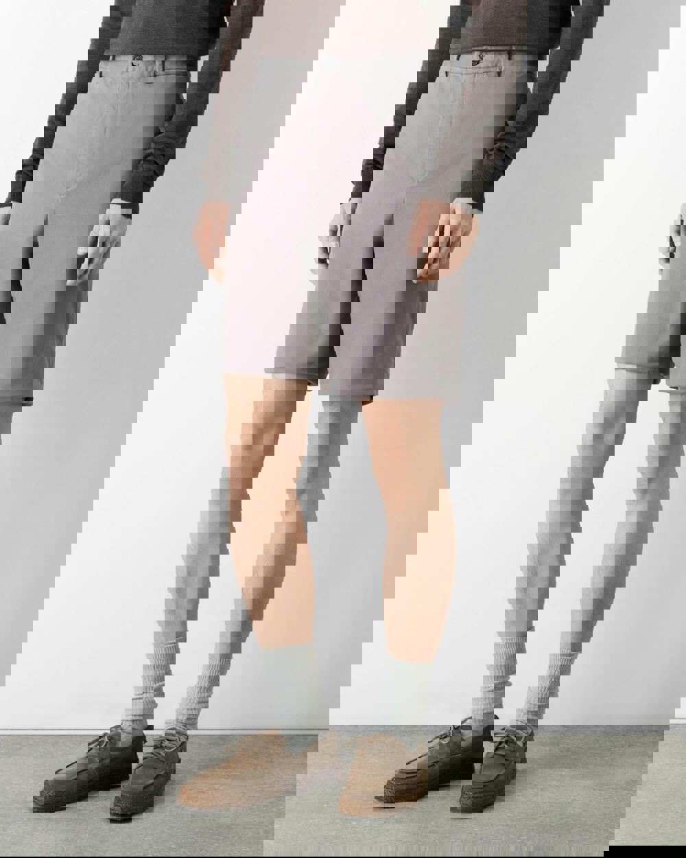 Sistelo garment dyed chino shorts are made from a mid weight soft cotton fabric with a brushed feel, not overly warm, but sturdy enough for Spring through to Autumn with a small amount of elastane for a comfortable, flexible fit. The garment dyeing process creates a casual softness of colour with perfectly tonal threads and internal bound seams. Features two side angled front pockets and two jetted back pockets with a horn button to complement the waist button above the zip fastening.