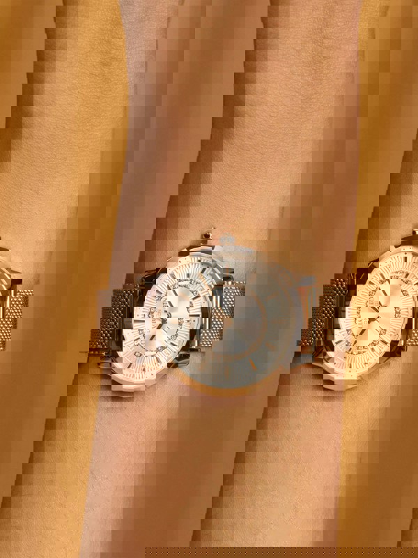 The Olivia Burton Wonderlust IP Mesh Bracelet Watch in Rose Gold (30mm) brings a distinctive look to everyday wear. Designed as a girls’ watch, it pairs a silver white sunray dial with a signature sunburst finish for a light-catching effect that stays easy to read at a glance.