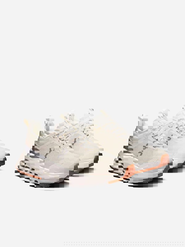 On Running Kids Cloudnova trainers in ivory update a popular design with CloudTec technology. The upper combines recycled polyester and TPU, paired with a rubber outsole. Reflective laces and reflective design details add visibility-focused accents, while a protected toebox reinforces the front of the shoe.
