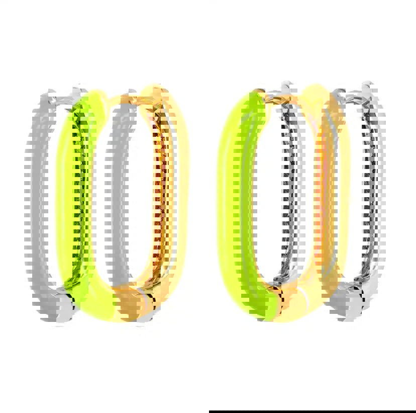 Colourful boho rectangle gold coloured metal huggie earring. Enamel painted. Statement earrings.