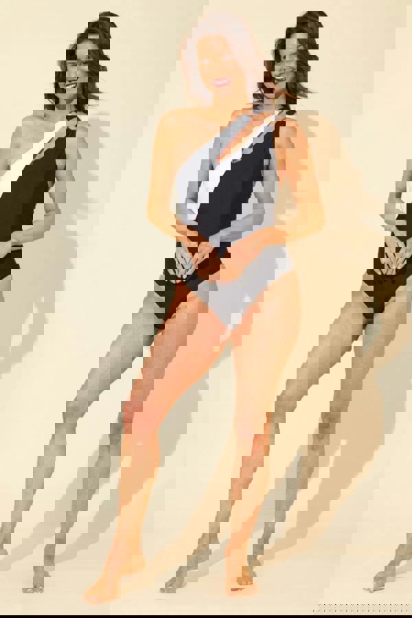 Bring a modern look to swimwear with the One Shoulder Swimsuit, style code 15-LSS12. This swimsuit uses colour block panels and ring detailing at the double straps for a distinctive finish. An inner moulded cup support works with full front and back lining to create a supportive, shaped silhouette.