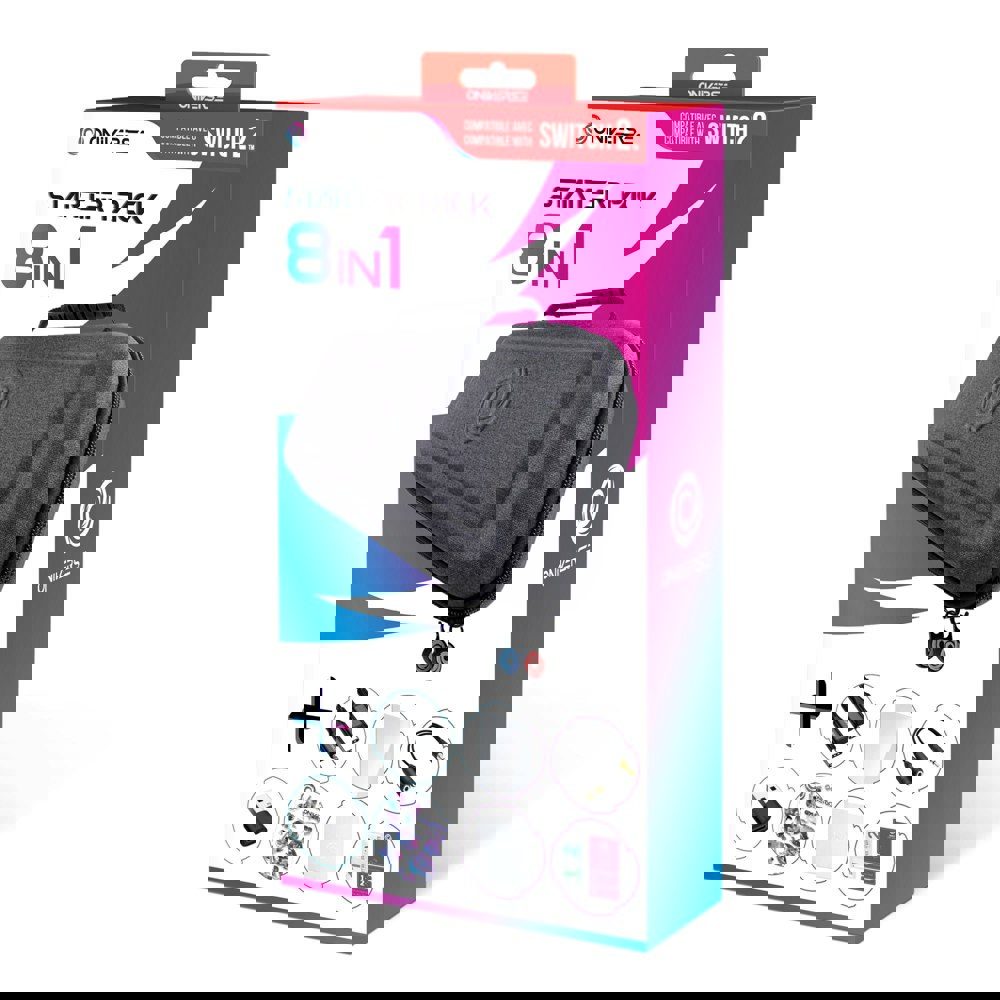 This 8-in-1 starter kit includes all the essential accessories to complement your console. The carrying case is perfect for on- the-go gamers who want to protect their SwitchTM from drops and shocks. The screen protector shields your console from scratches and accidents without diminishing your gaming experience, thanks to its 0.33mm thickness. You can choose to share your adventures with a friend using the dual audio Jack splitter. The USB-C® to USB-C® cable allows you to charge your SwitchTM wherever you are. You’ll also find a cleaning kit and a cloth to keep your SwitchTM like new, along with stickers to personalize it as you wish!