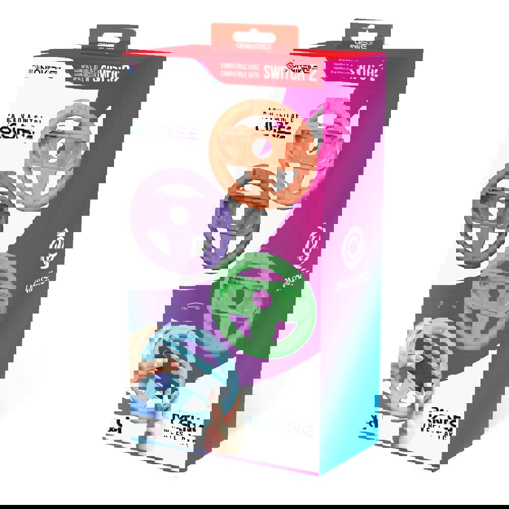 4-in-1 pack consisting of 4 racing wheels for Nintendo SwitchTM controllers. The wheels provide an optimal gaming experience and successful immersion! 4 colors included in the same pack: Blue, Orange, Purple, Green.