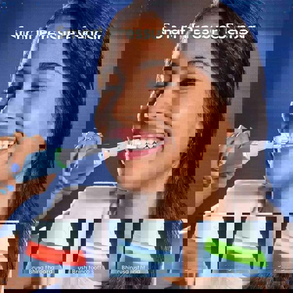 The gentle care brush head protects sensitive teeth and gums while effectively removing harmful bacterial plaque.