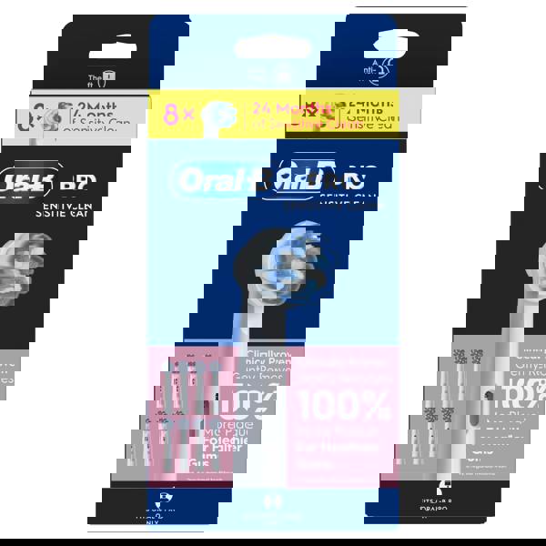 The Oral-B Pro Sensitive Clean features extra soft bristles that are gentle on gums, combined with regular bristles that are tough on plaque. It removes up to 100% more plaque and reduces gum inflammation by 100% compared to a manual toothbrush. Oral-B genuine brush heads are designed with new X-shape bristles that clean in areas that round ones cannot reach. Guaranteed fit with Oral-B electric rechargeable toothbrushes except Pulsonic & iO toothbrushes.