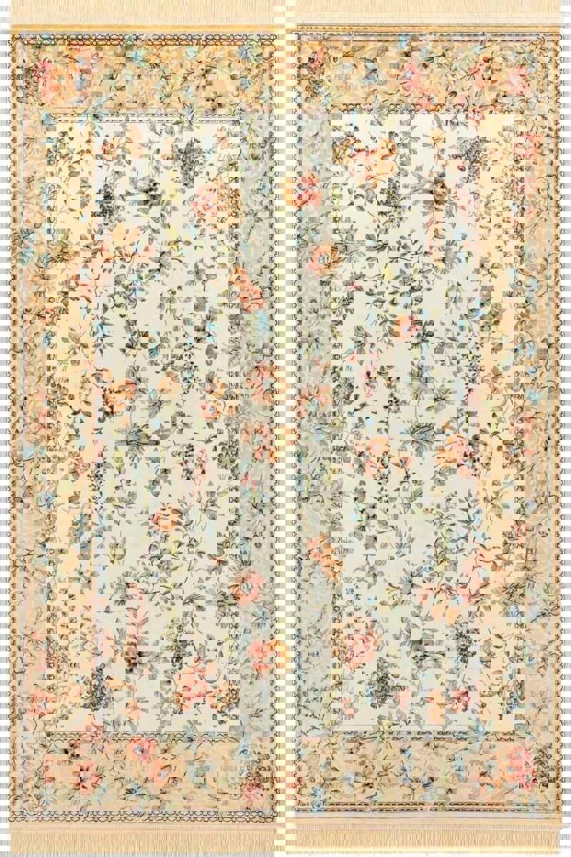 Bring subtle vintage charm to your interiors with the Oriental Flowers Velvet With Fringes Rug. Its delicate floral motifs and soft beige shimmer create a refined, timeless look, while the lightweight construction and extra-thin pile (~0. 5 cm) make it practical for everyday living.