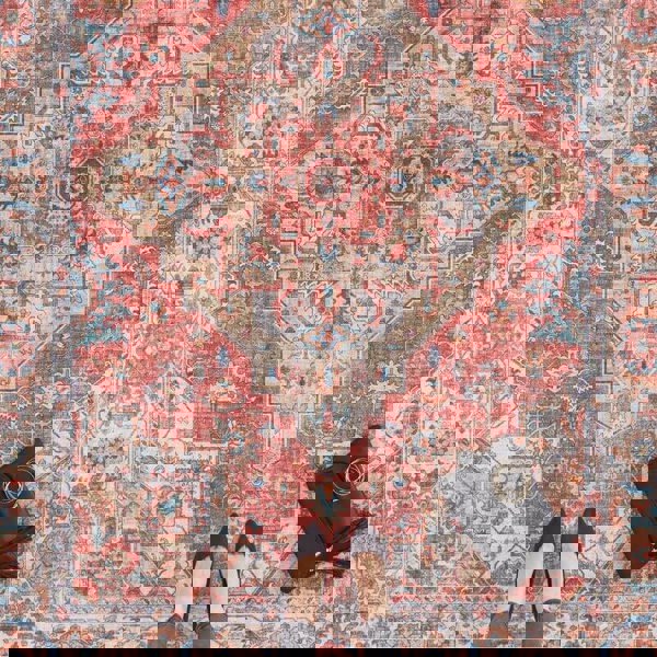 Bring refined character and versatile style to your home with the Oriental Sylla Brick-Red Rug. Its distressed medallion pattern, combining floral and tribal motifs with detailed borders, adds vintage charm while remaining practical for daily use.