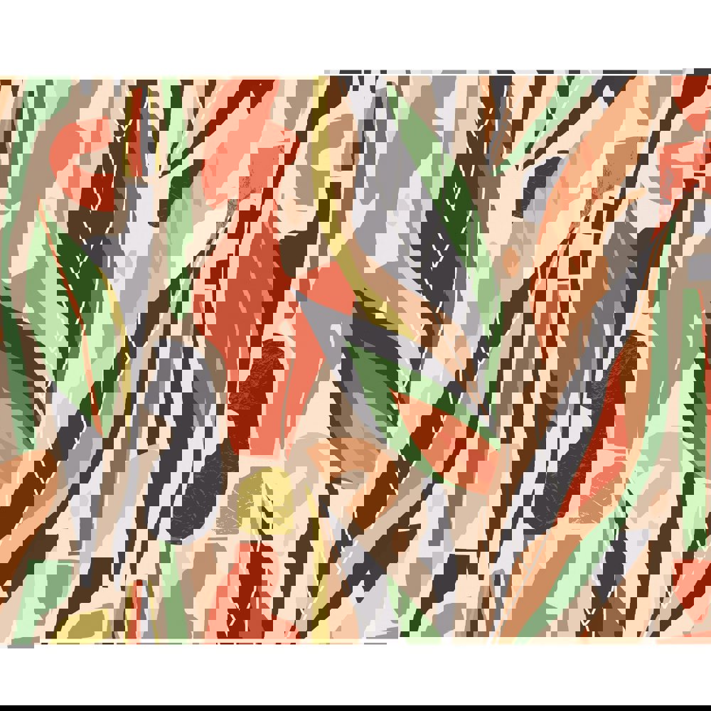This contemporary wall mural features an assortment of abstract leaf shapes and sculptural representations of the human form. Dramatic and striking, this statement wall mural is perfect for any modern home.
