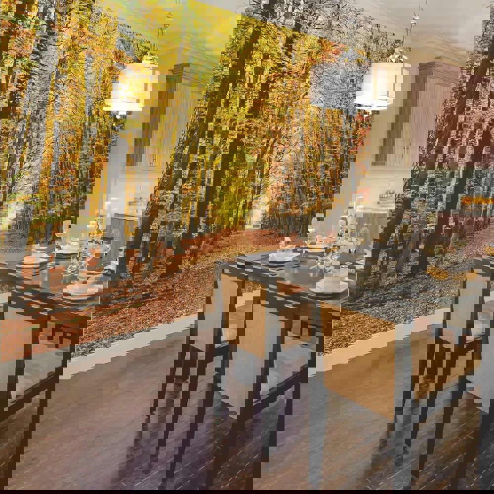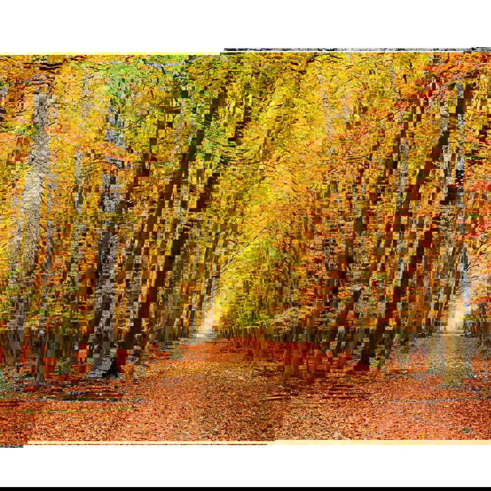 Meander down a tranquil forest pathway adorned with tones of russet, ochre and amber. A beautifully scenic mural, abundant with warm autumnal colours.