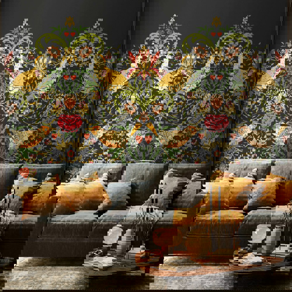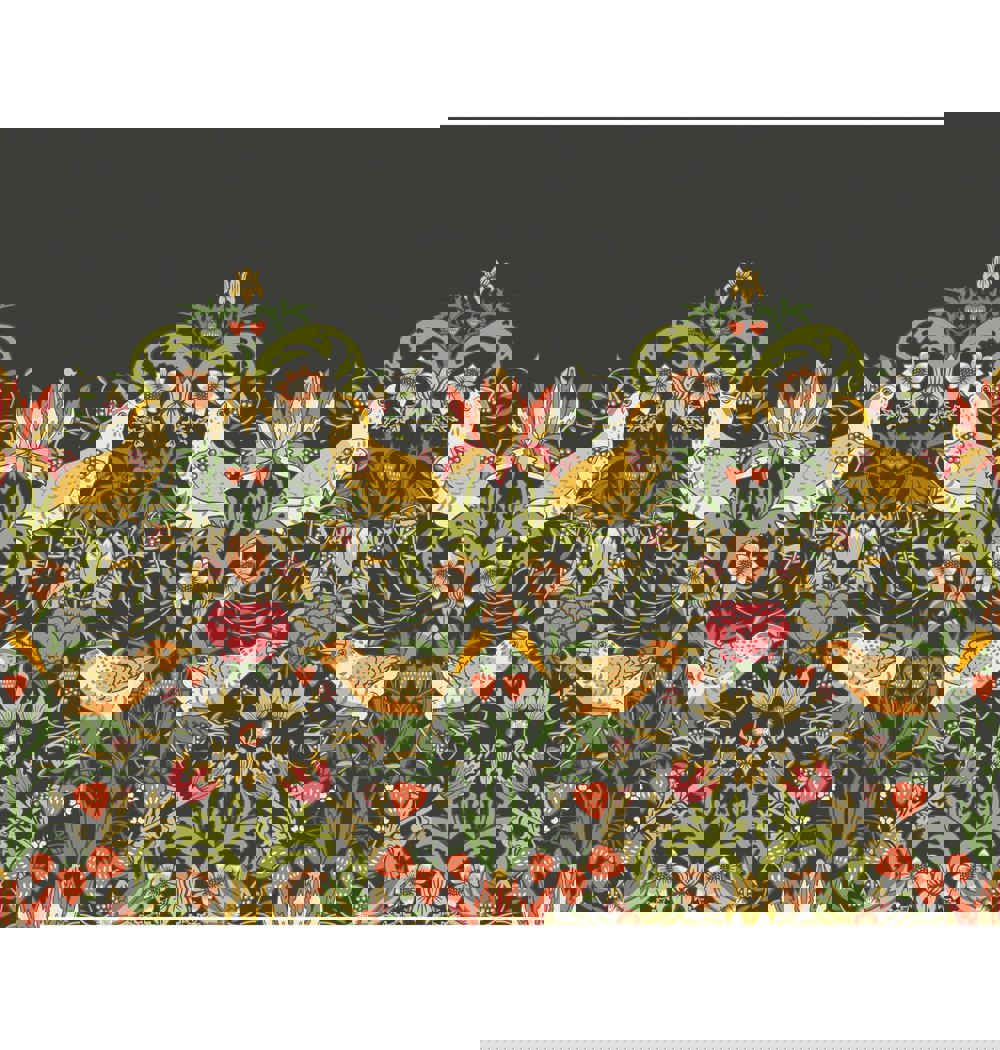 A wonderful repeating design featuring intricate details of naughty thrushes stealing fruit and picking berries. Sweeping flowers and foliage encircle the birds to create a beautiful scene inspired by the iconic William Morris design from1883.