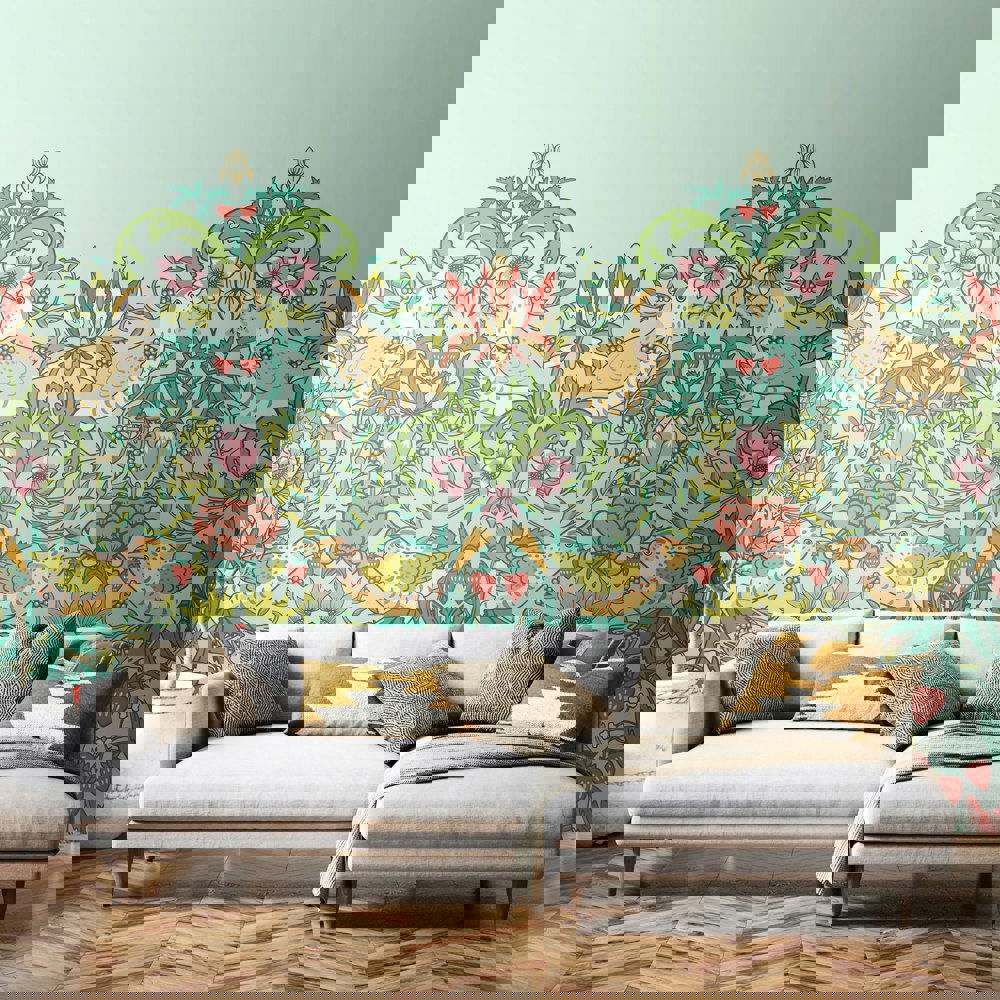 A wonderful repeating design featuring intricate details of naughty thrushes stealing fruit and picking berries. Sweeping flowers and foliage encircle the birds to create a beautiful scene inspired by the iconic William Morris design from1883.