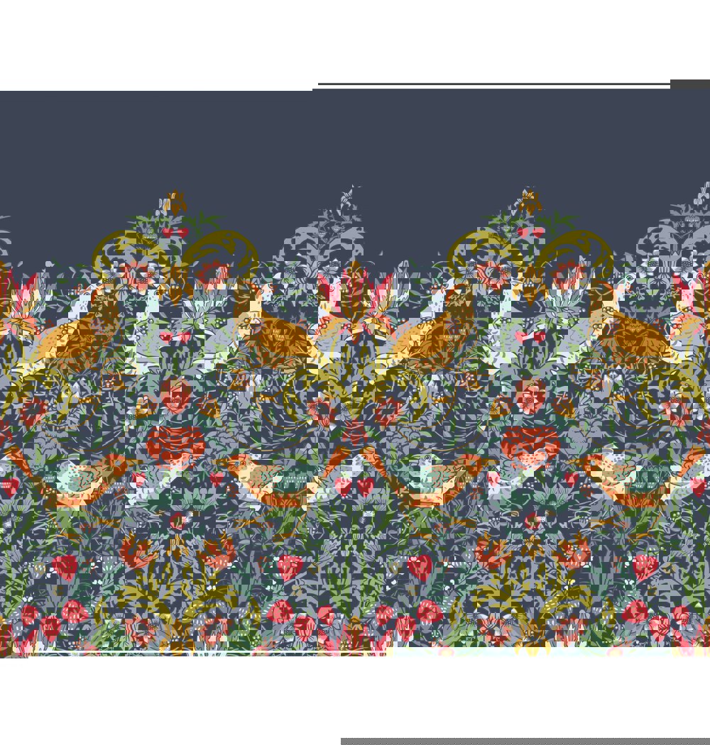 A wonderful repeating design featuring intricate details of naughty thrushes stealing fruit and picking berries. Sweeping flowers and foliage encircle the birds to create a beautiful scene inspired by the iconic William Morris design from1883.