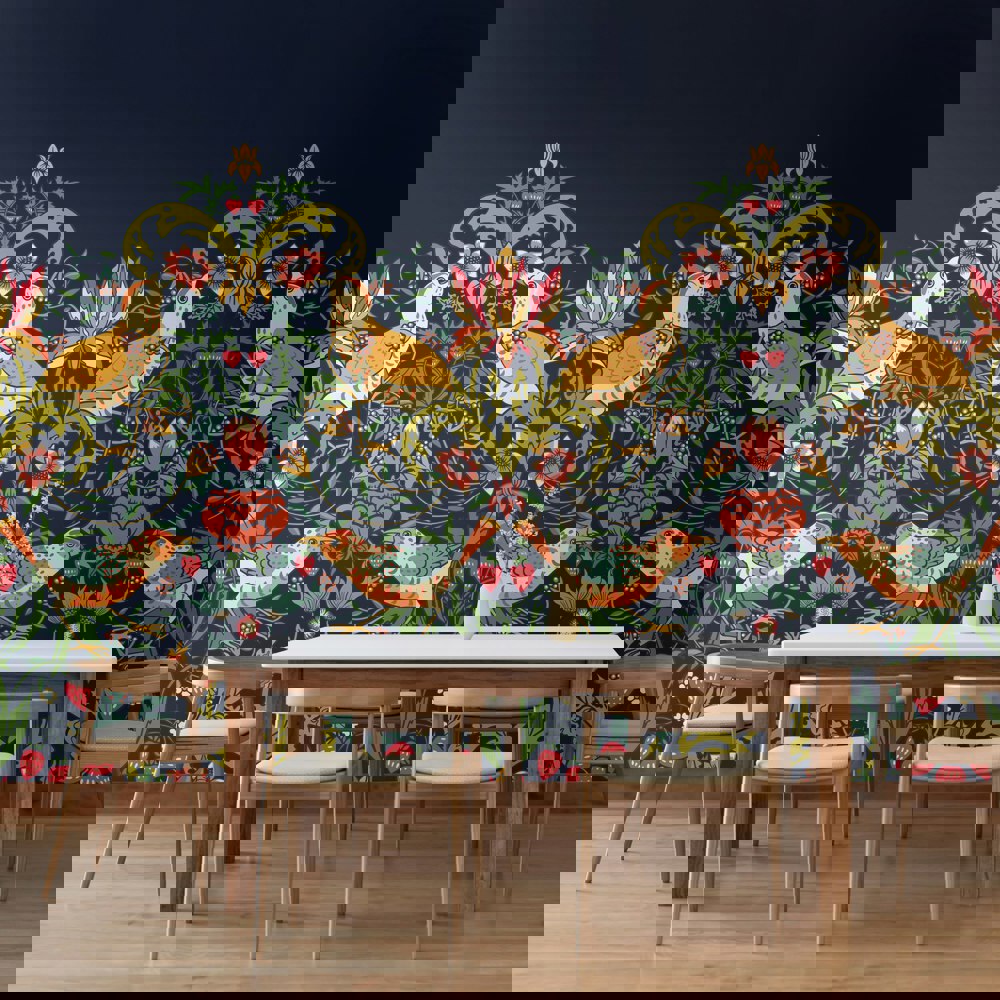 Origin Murals Birds, Fruit and Foliage - Navy and Coral