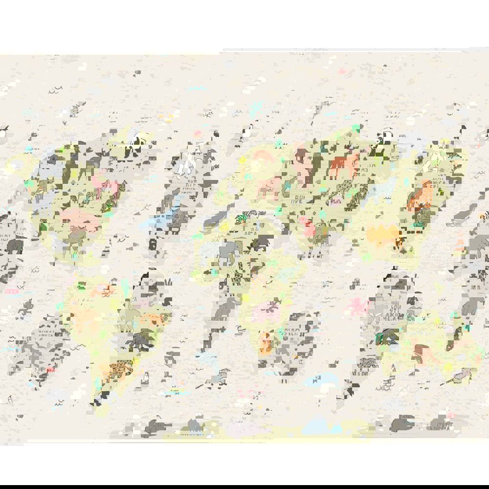 Origin Murals Children's World Map Wall Mural - Natural