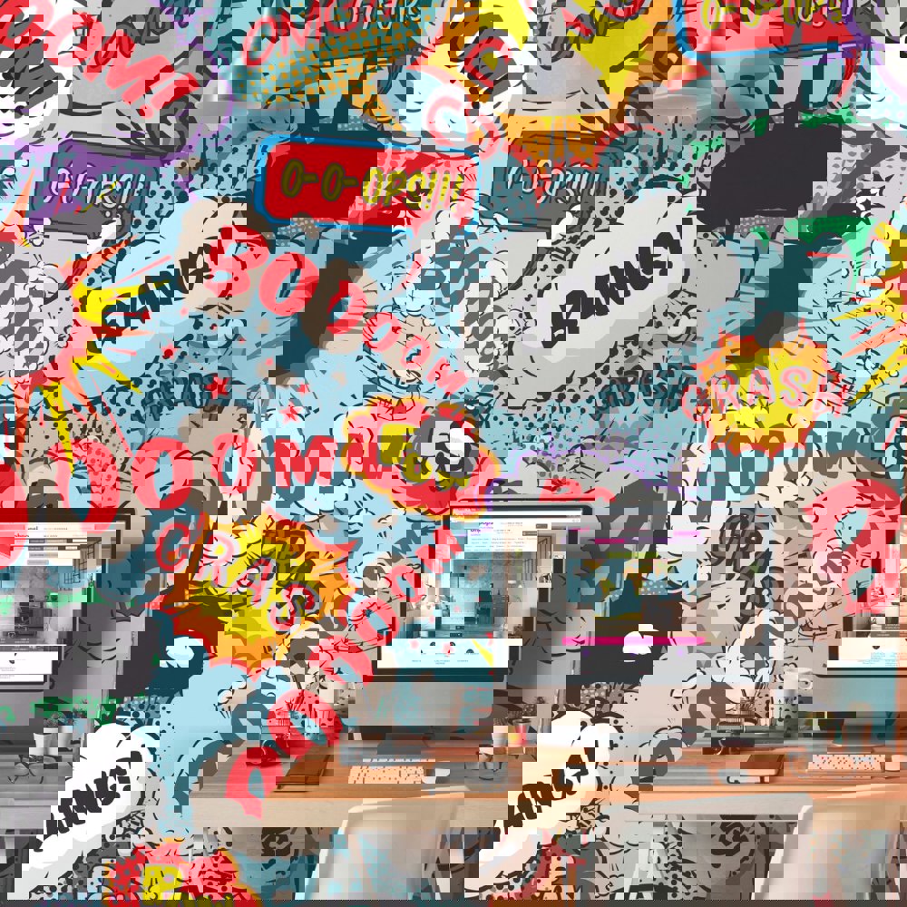 A bold and colourful design, Comic Pop injects a sense of youth with its playful use of comic crashes and bangs. This contemporary wall mural provides a fresh take on traditional pop art graphics creating an interior with an urban yet refined feel.