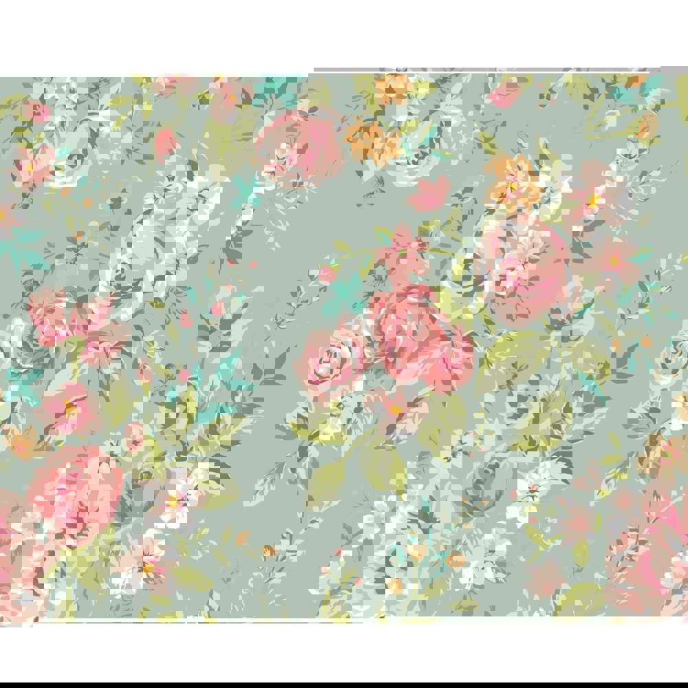 Slender stems decorated with roses, carnations and small leaves emulate timeless beauty in this delicate yet spirited mural.