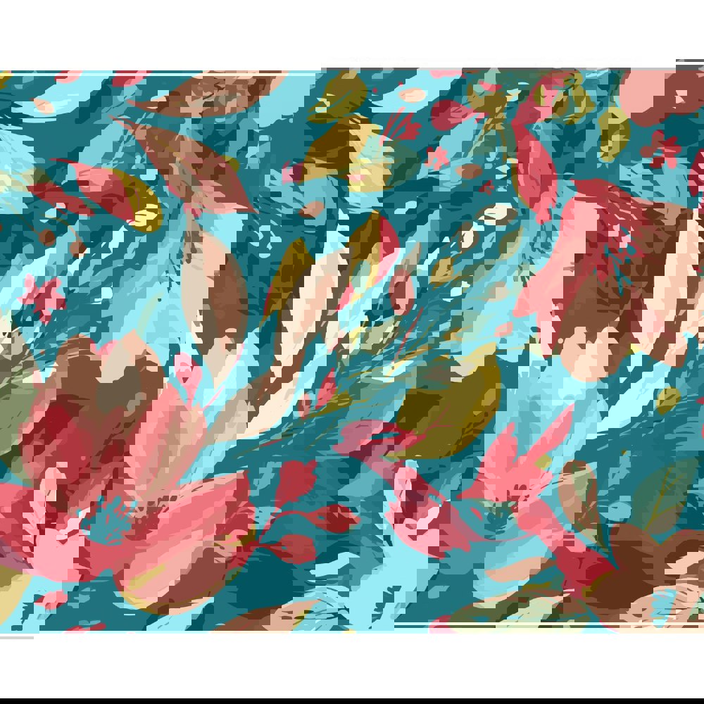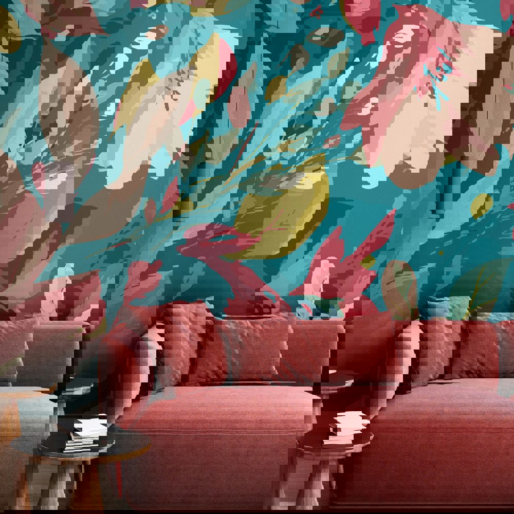 Origin Murals Flowing Flowers - Teal Blue and Coral