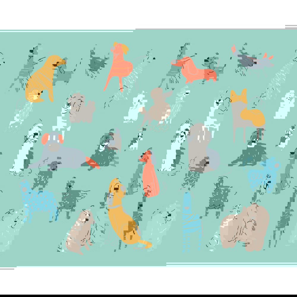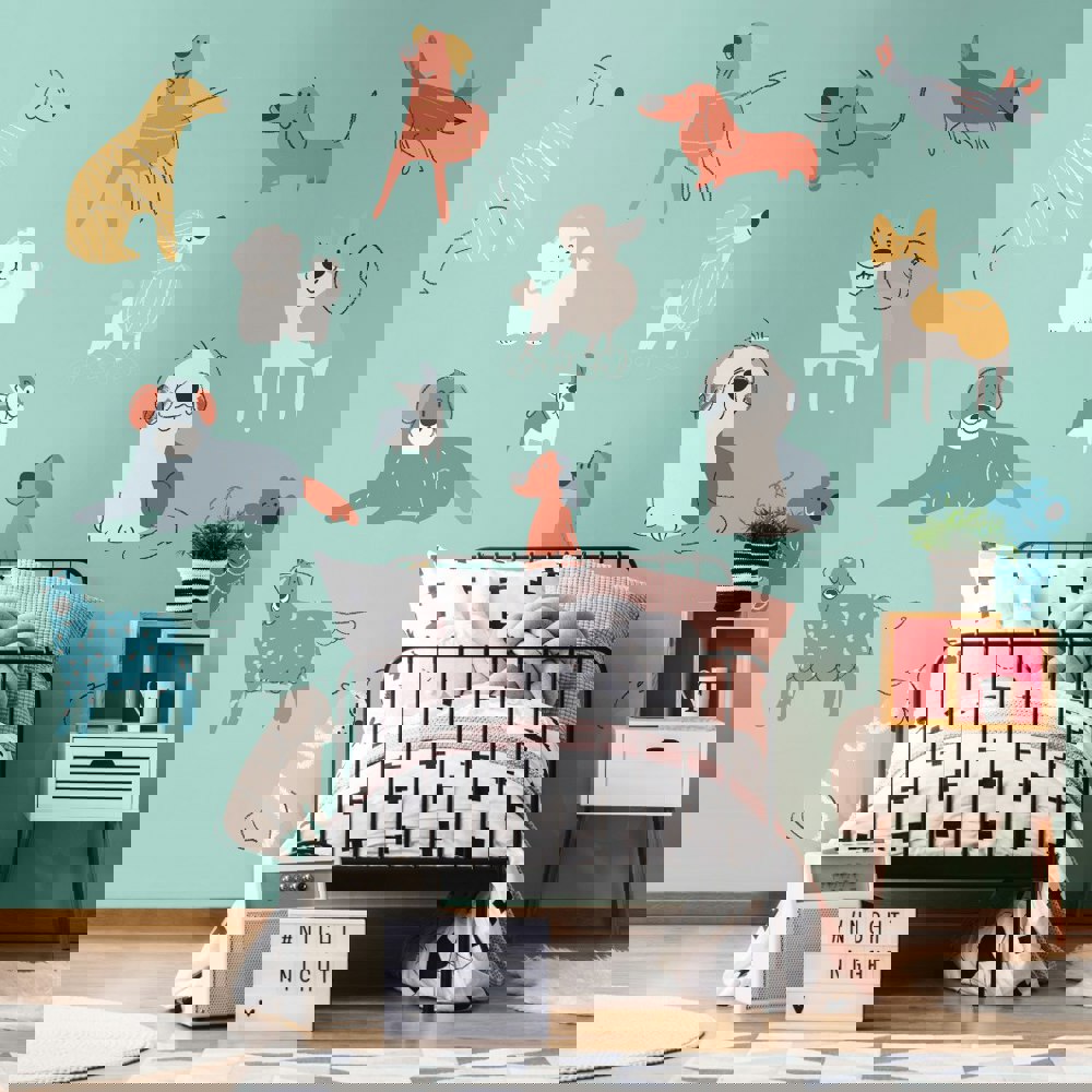 Positive, playful and downright charming, our Happy Dogs mural features a simple design of cartoon, doodled dogs of different breeds against a single-coloured ground. Happy and energetic this mural is bound to introduce a sense of spirit to your space.
