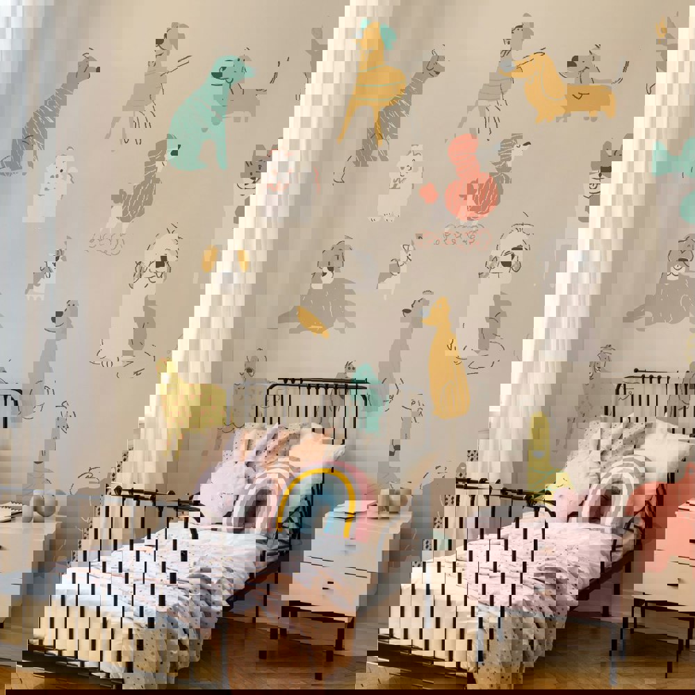 Positive, playful and downright charming, our Happy Dogs mural features a simple design of cartoon, doodled dogs of different breeds against a single-coloured ground. Happy and energetic this mural is bound to introduce a sense of spirit to your space.