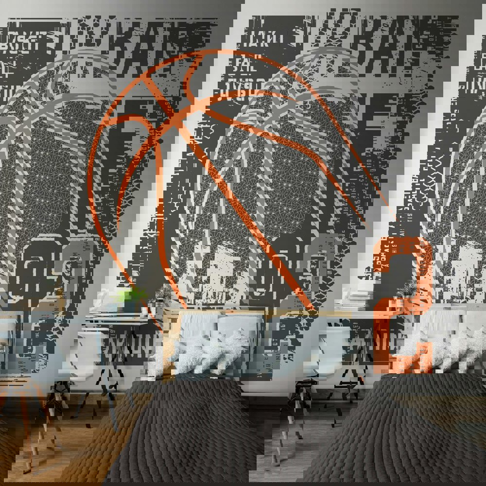 This abstract mural features the outline of an illustrated basketball, as well as a jersey number against a distressed background, the perfect mural for any basketball fans.