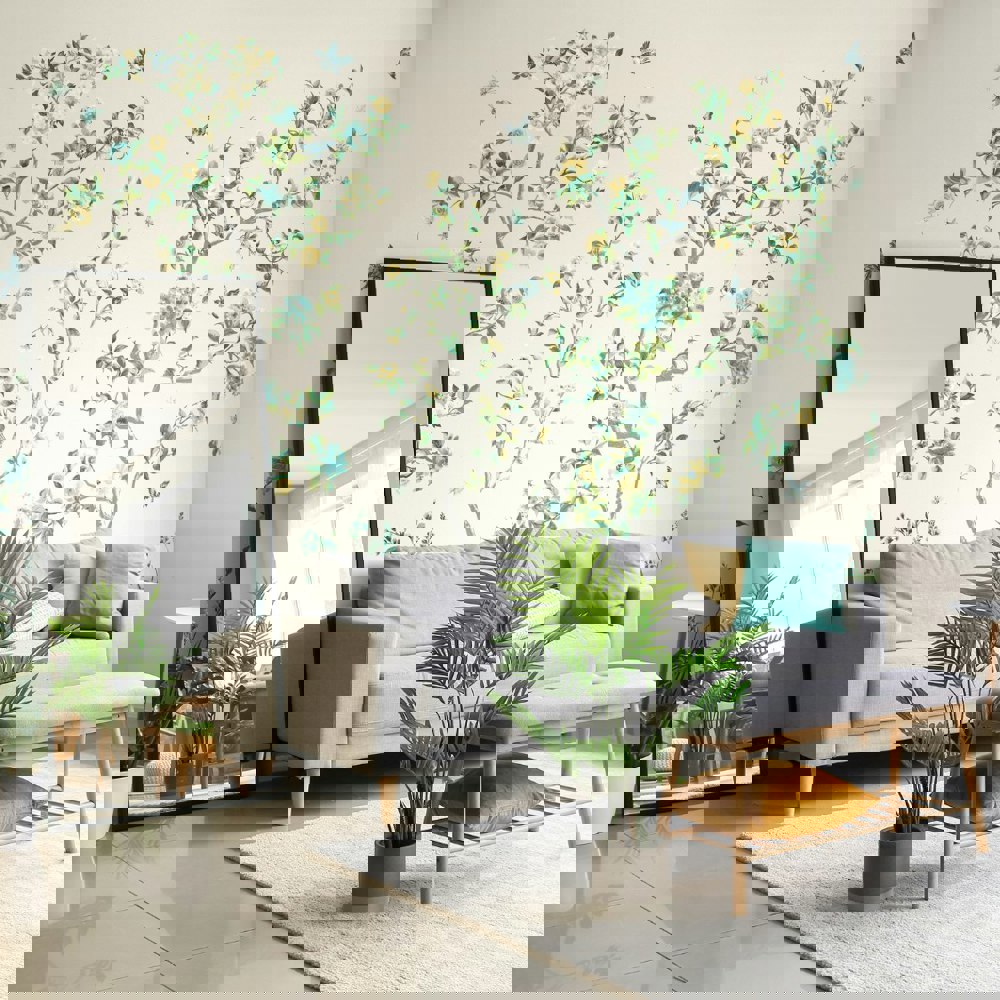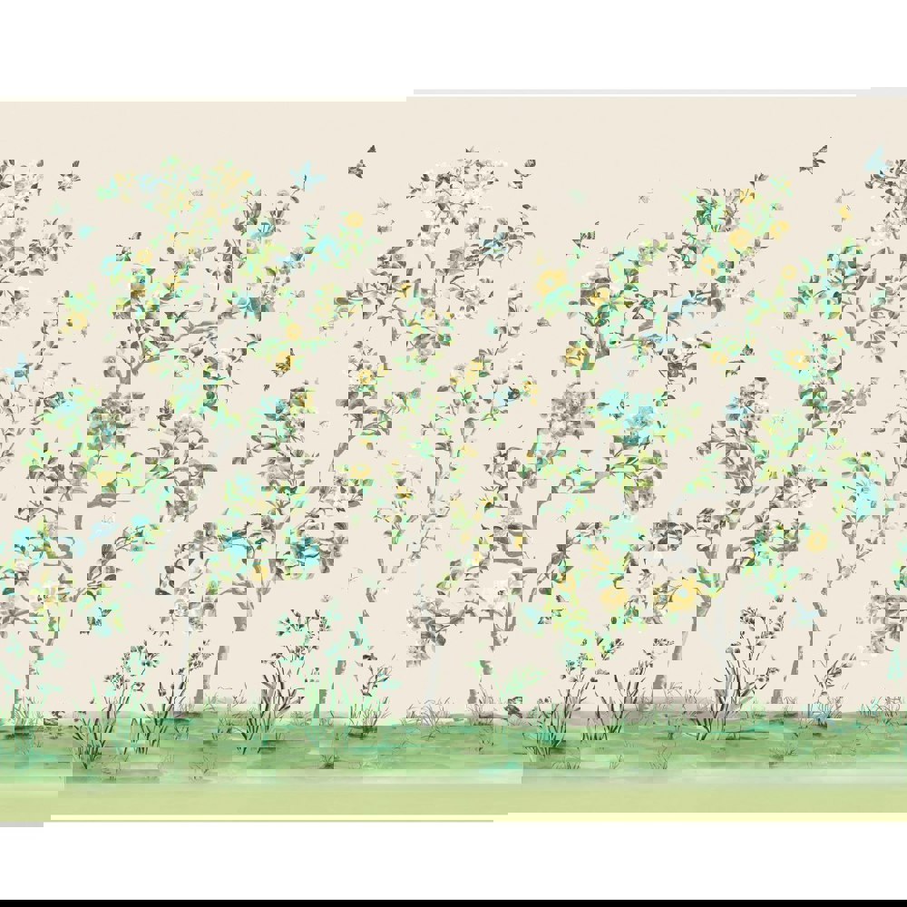 This beautifully hand-drawn chinoiserie wall mural features an array of watercolour flowers, trees, birds and butterflies sat on a rolling landscape ground. If you’re looking for a design to bring some botanical garden serenity into your home, this wall mural is the perfect choice.