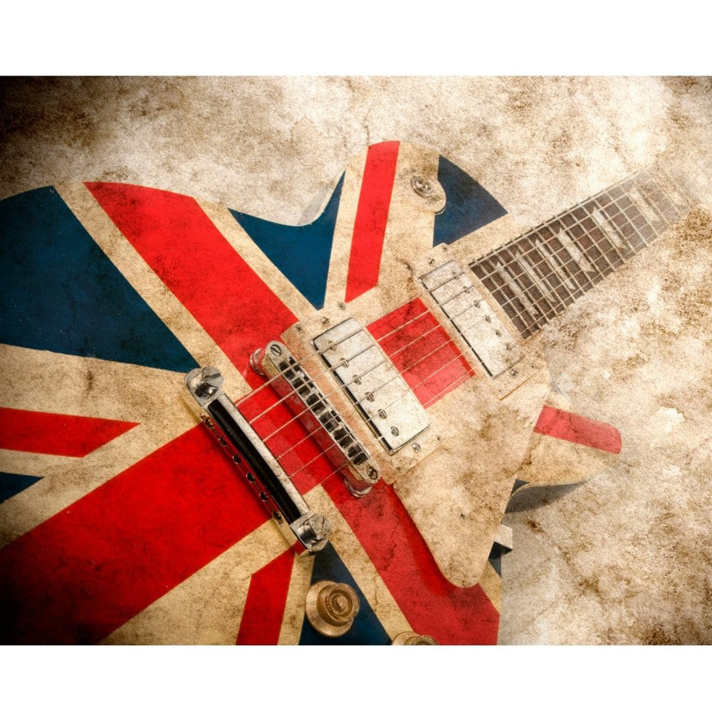 This rock-inspired mural has a vintage twist, displaying music symbols with a classicly British touch on a distressed sepia background.