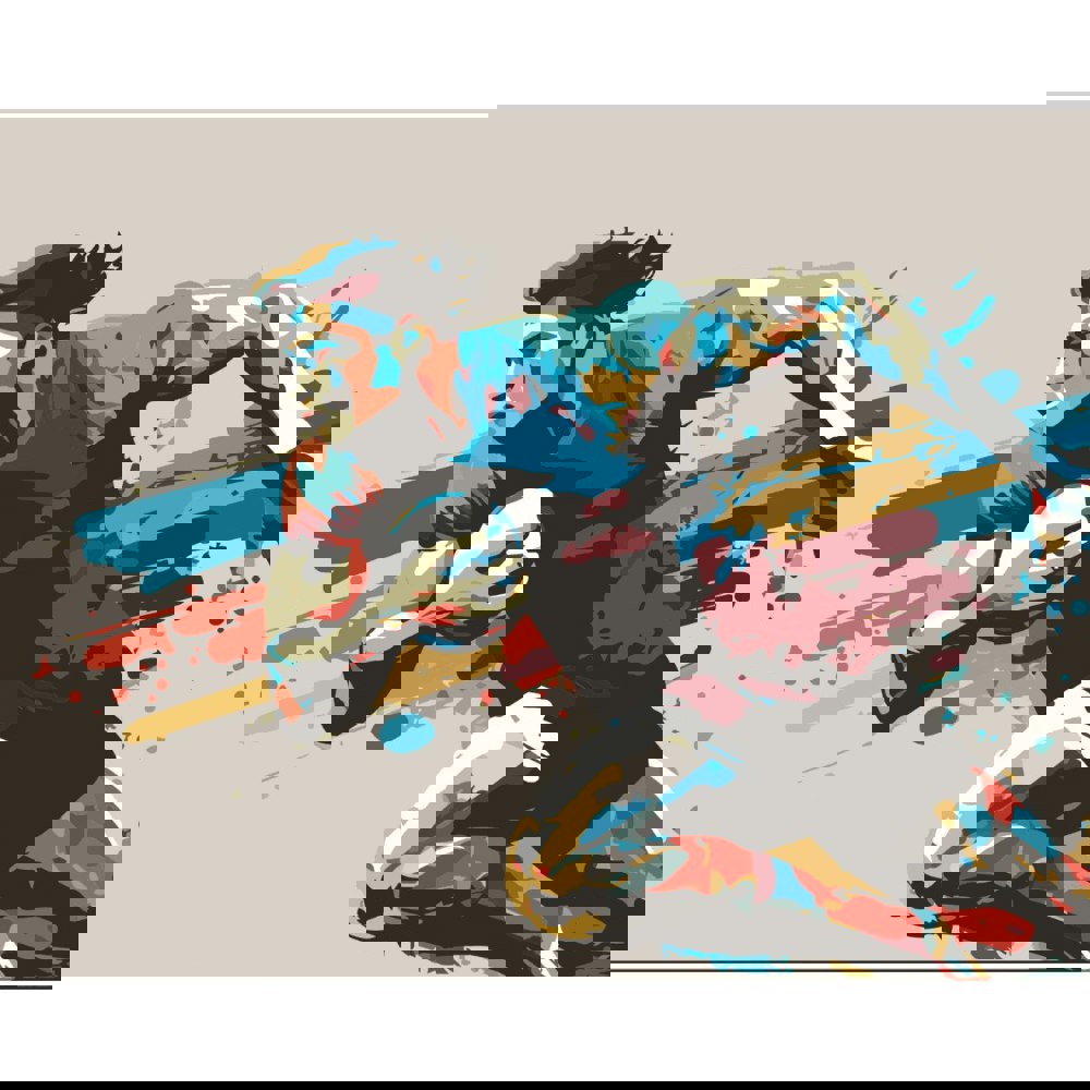 This dynamic design features a rugby player running with the ball, with organic strokes of colour indicating just how fast they're running and creating a sense of life and movement.