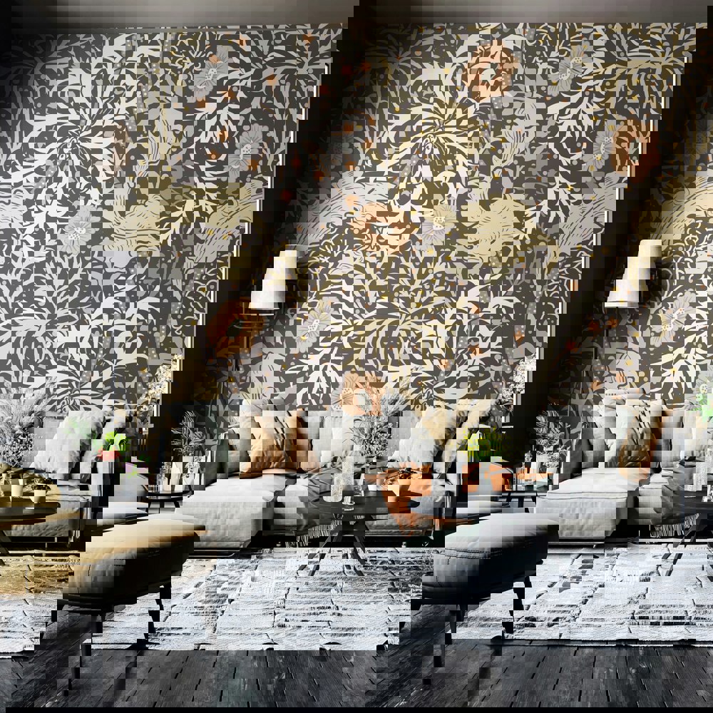 Submerged tangled plants entwine and criss-cross to create graceful movement and waves on the wall. A feast of foliage and seaweed heads, this illustrated design is a beautiful interpretation of John Dearle’s design for William Morris.