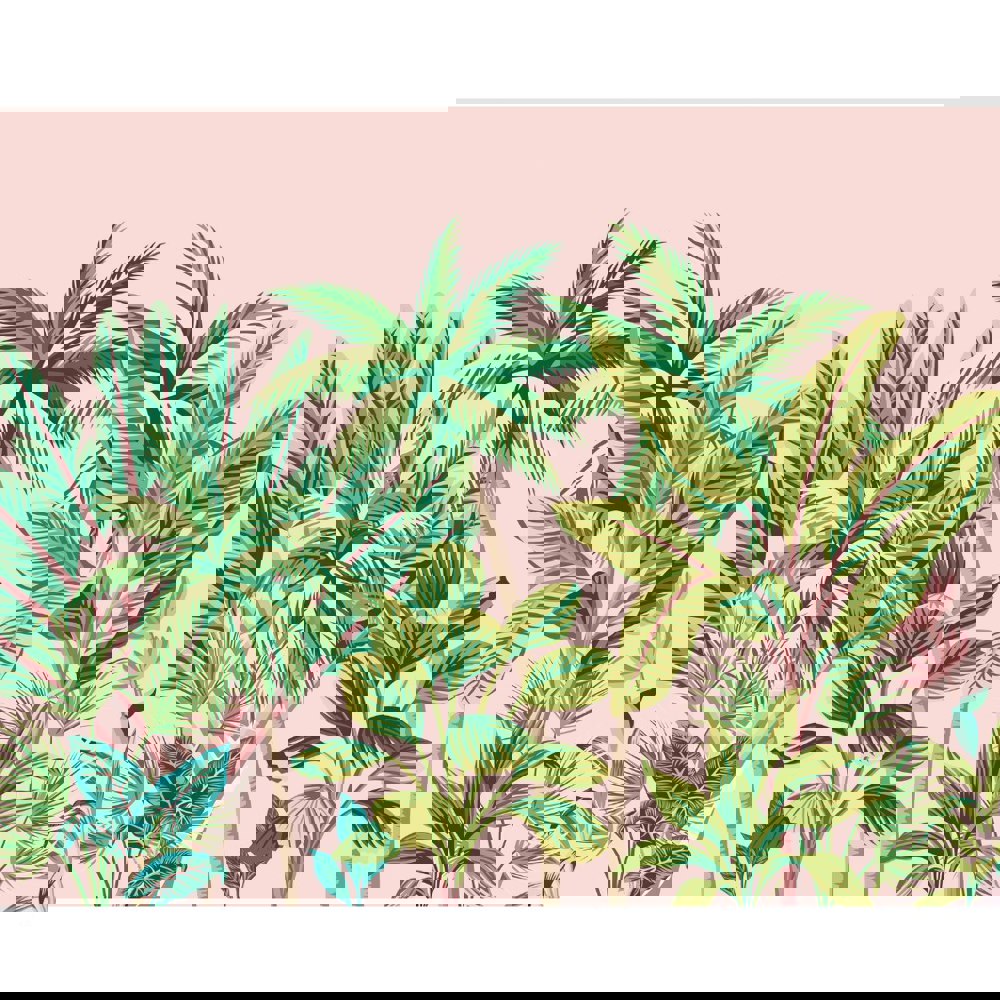 This stylish, tropical wall mural features an abundance of swaying palm trees, exotic foliage and banana leaves. A vibrant, bold design that is full of personality.