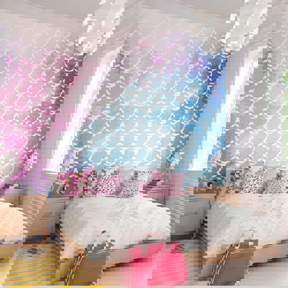 Bask in the mesmerising colour and pattern of this unique design featuring dreamy unicorns and mermaids in a pastel colour palette.