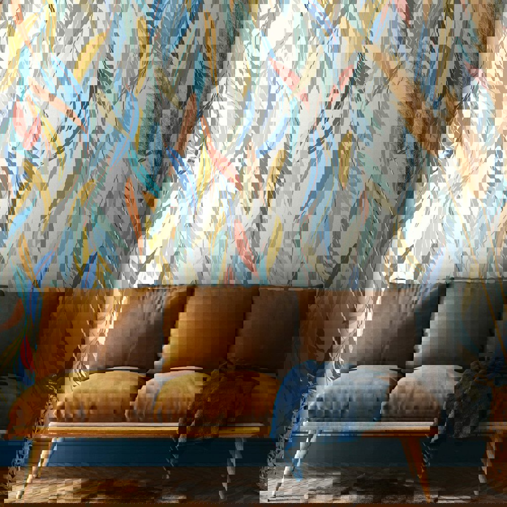 Origin Murals Willow Leaves - Denim Blue and Apricot