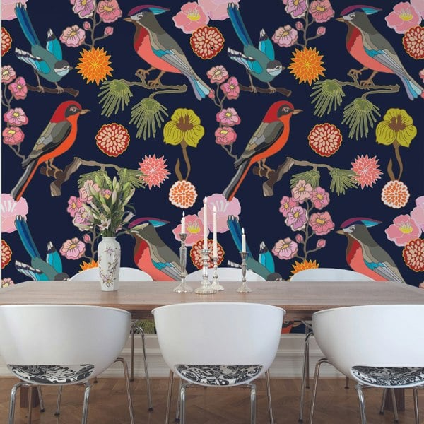Floral Birds Wall Mural - Ink