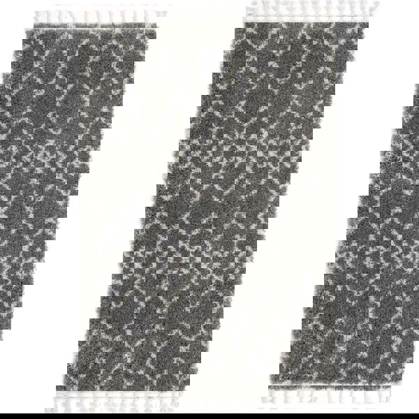 Elevate your decor with our Casablanca rug, featuring a sophisticated ivory layered diamond pattern against a soft grey backdrop