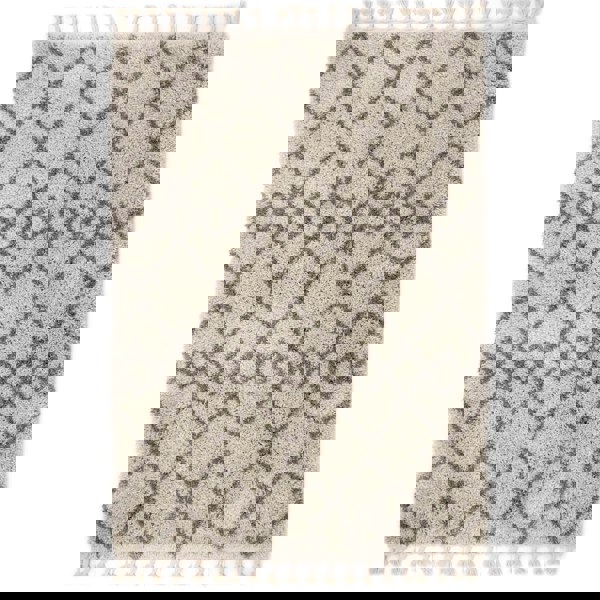 Elevate your decor with our Casablanca rug, featuring a sophisticated layered diamond pattern in a soft light brown hue against a creamy ivory backdrop