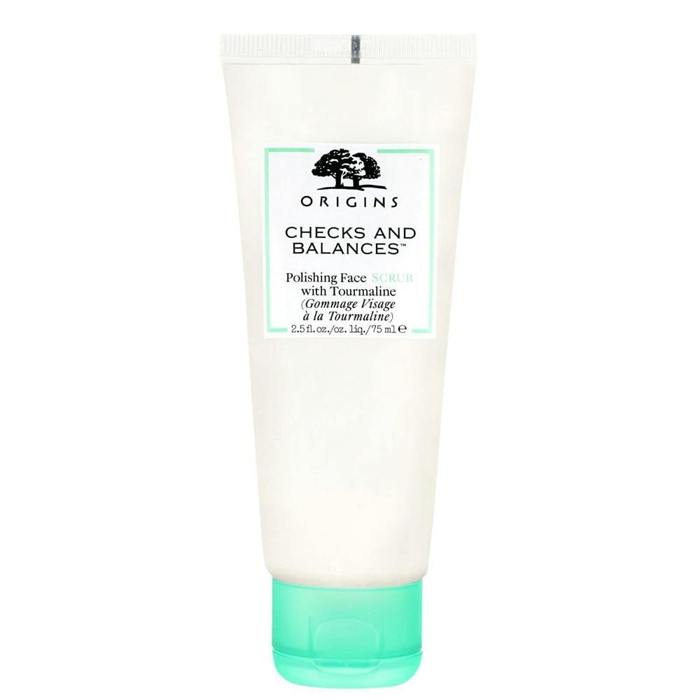 Origins Checks and Balances Polishing Face Scrub is a gentle facial scrub that lifts and removes impurities for a smoother-looking finish. Used on damp skin, it helps remove dead skin cells and is formulated with mint essential oil and red tourmaline.